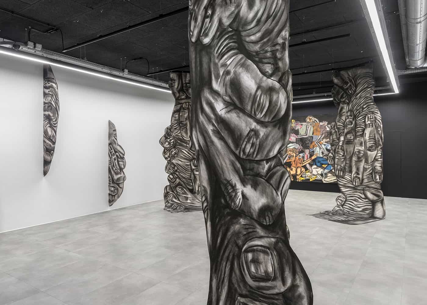 Ses installations explorent les notions de pouvoir, d’autorité, de corruption et d’inégalités de genre à travers des scènes théâtrales peuplées de figures expressives et distordues, brouillant les frontières entre dessin et sculpture.