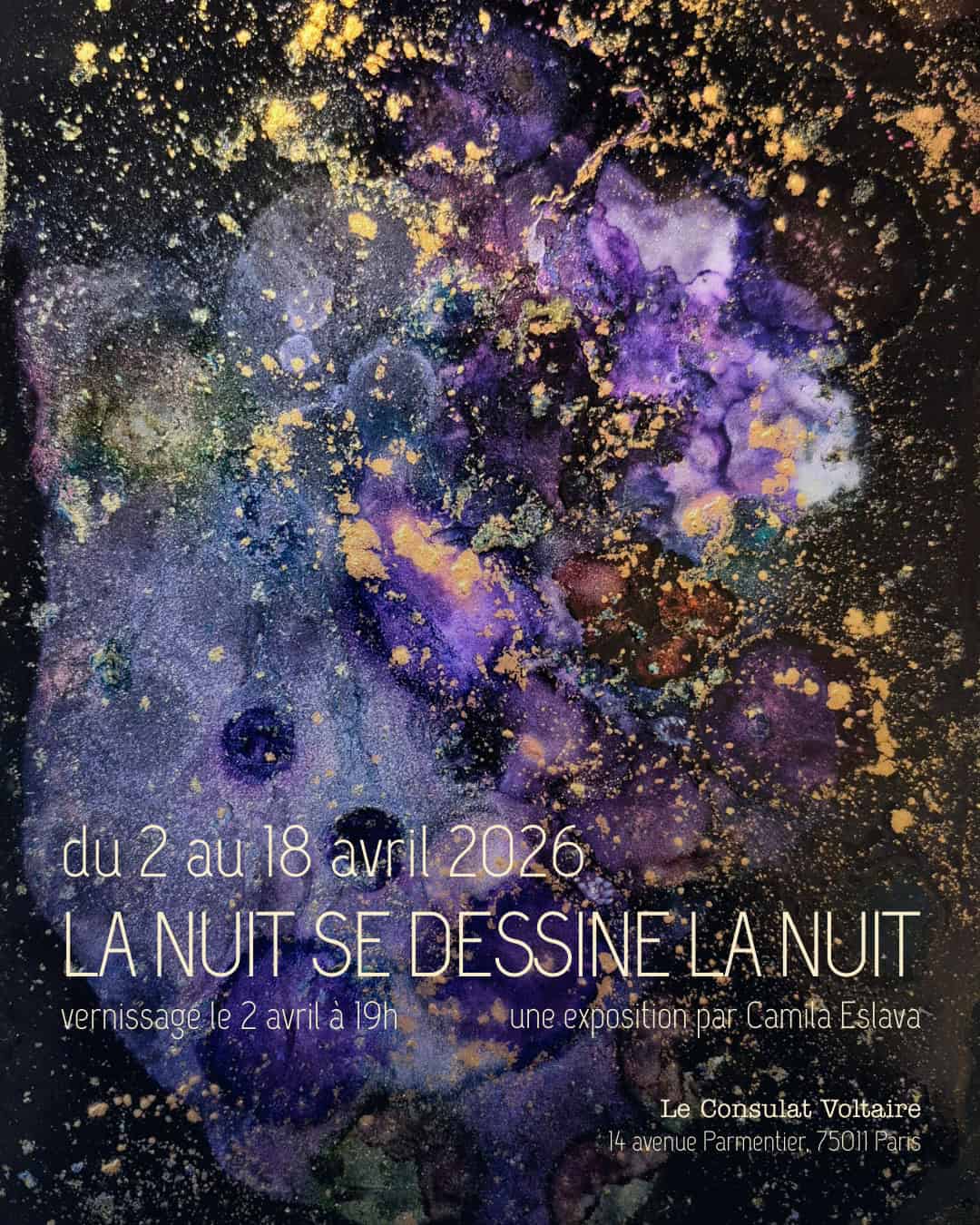 Le vernissage aura lieu le 2 avril à 19h à l’adresse de l’exposition.